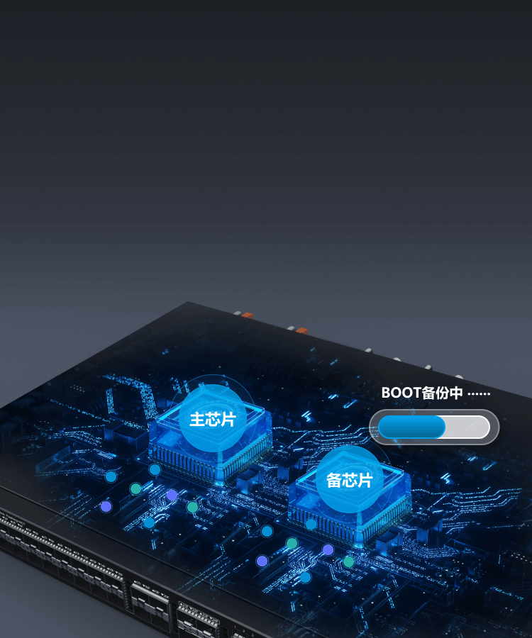 支持硬件层级双boot,采用两个FLASH芯片存储boot软件(系统引导程序),实现硬件级boot冗余备份,避免因FLASH芯片故障导致交换机无法启动。